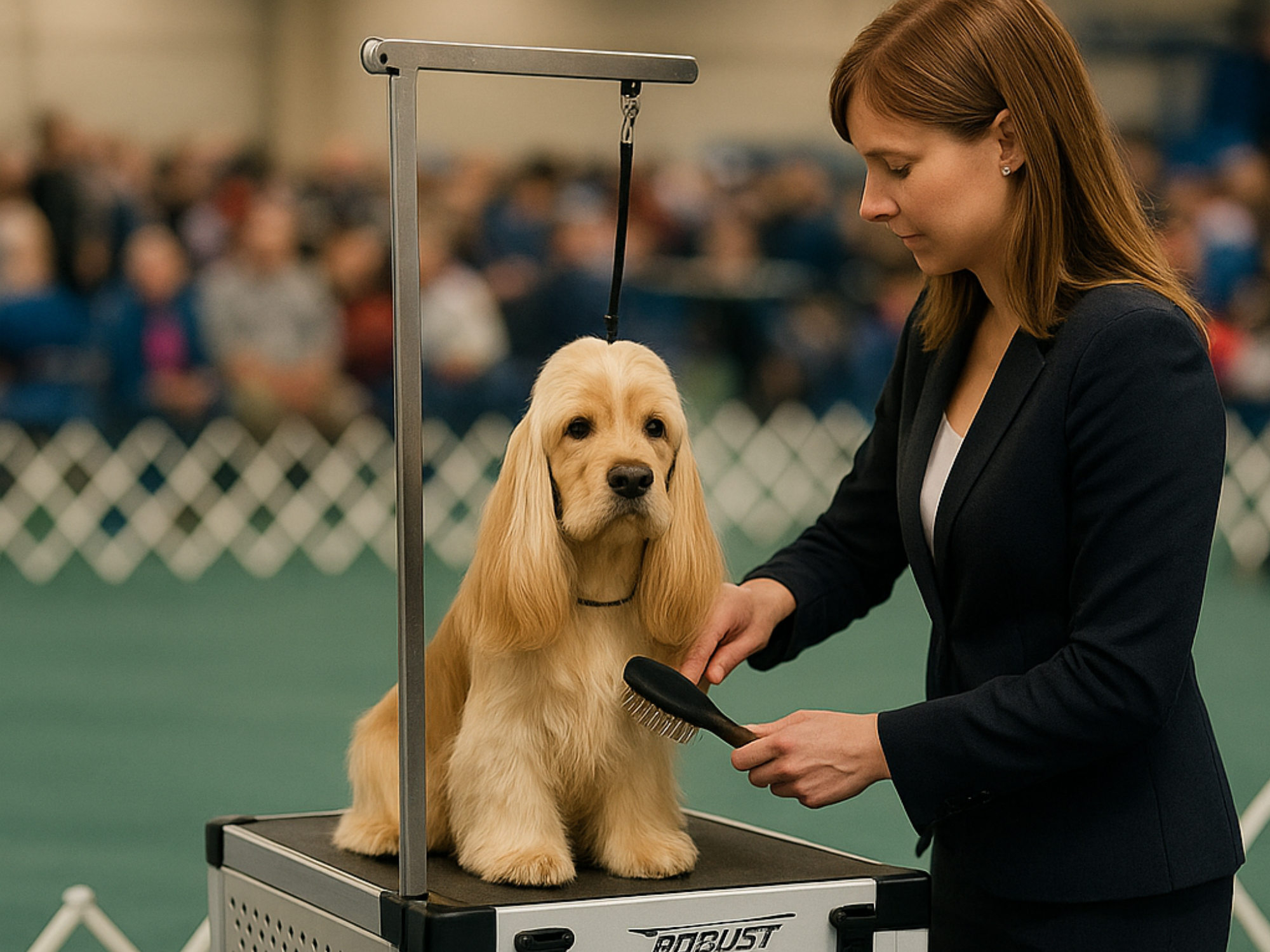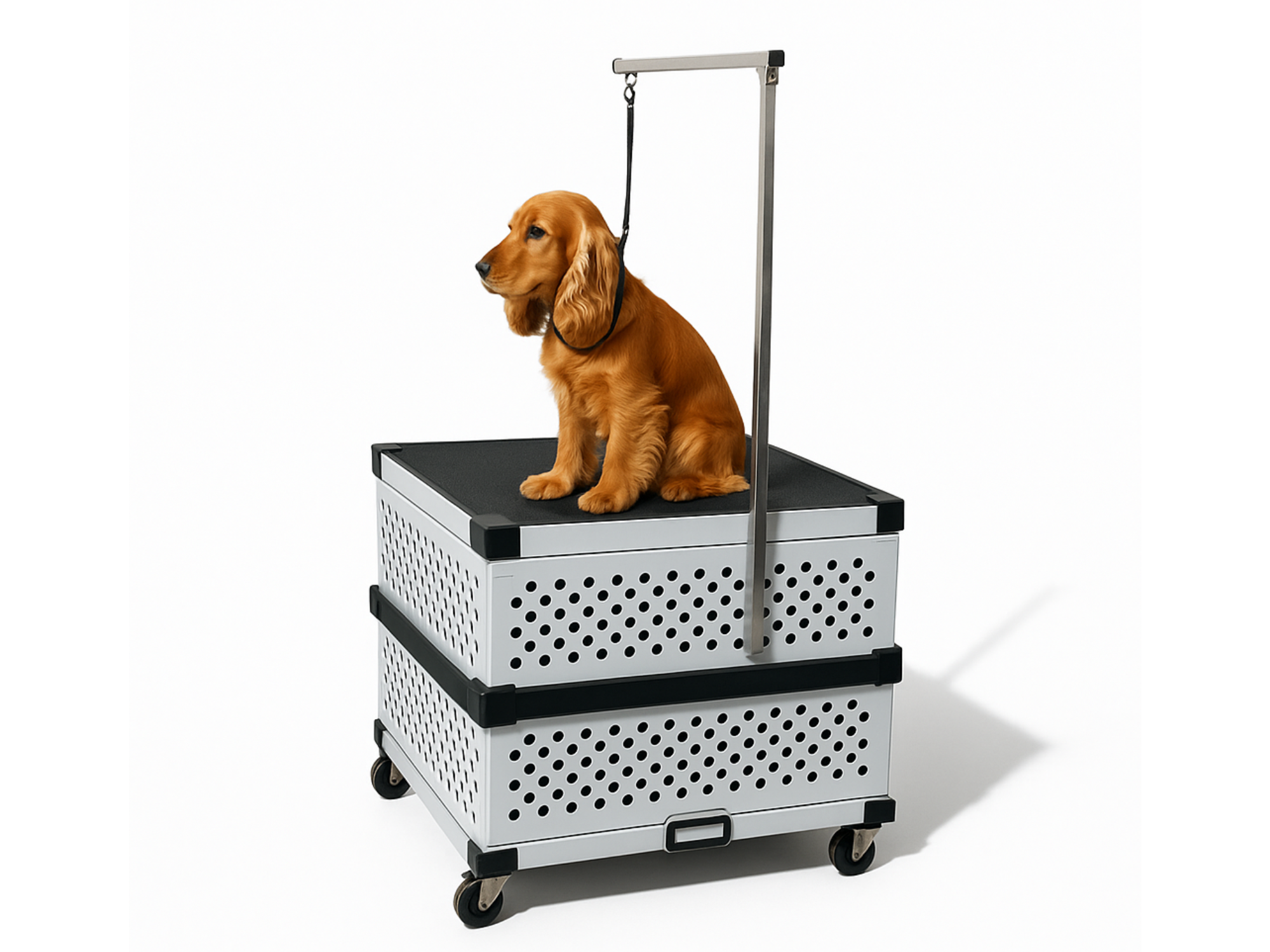 Su función es sujetar al perro de forma segura y cómoda, manteniéndolo quieto para facilitar tareas como el cepillado, el corte de pelo o el secado.