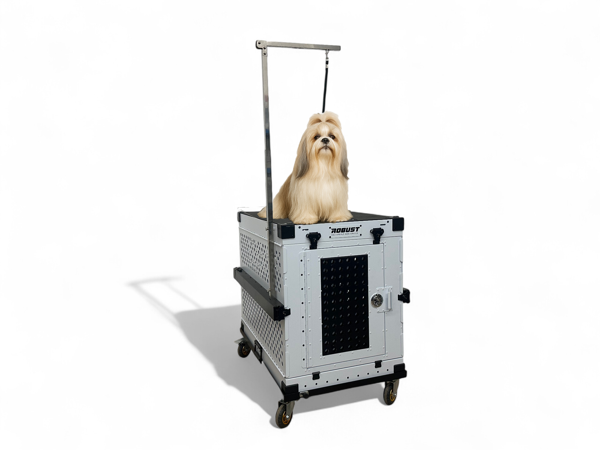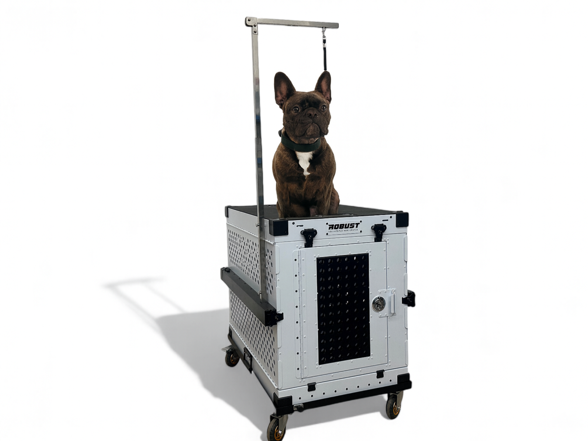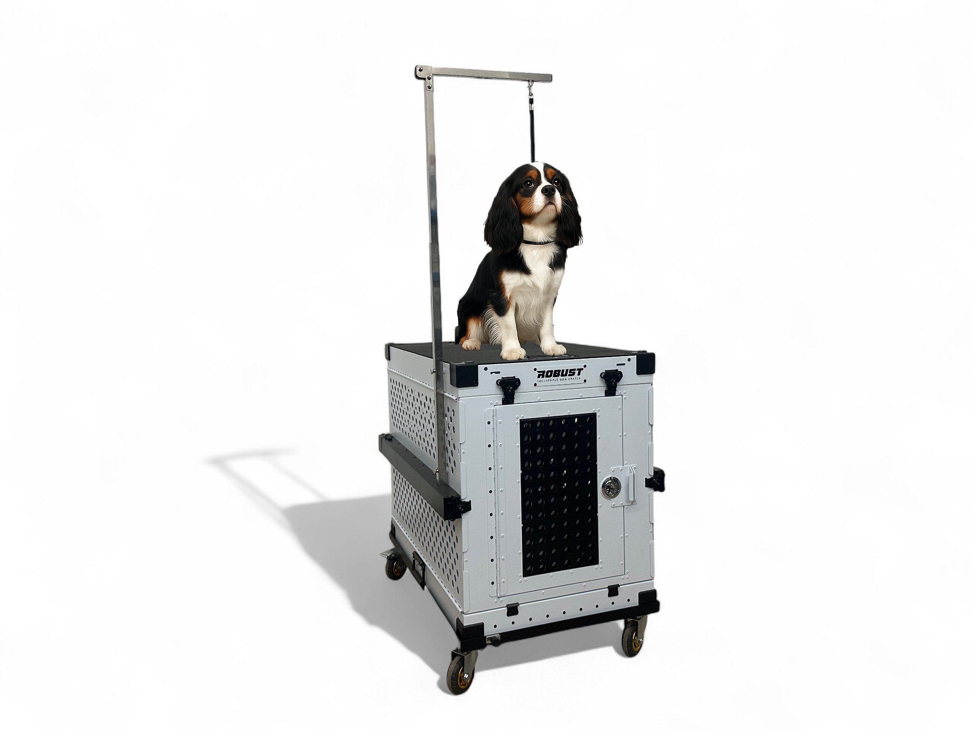 Transforma el aseo de tu perro en una tarea fácil y profesional con el set de peluquería ROBUST. Este kit completo, con brazo extensible y correa de sujeción, se acopla a tu jaula o mesa ROBUST para mantener a tu mascota segura y quieta durante el cepillado, corte o secado. Es la solución ideal para un acabado perfecto sin estrés.