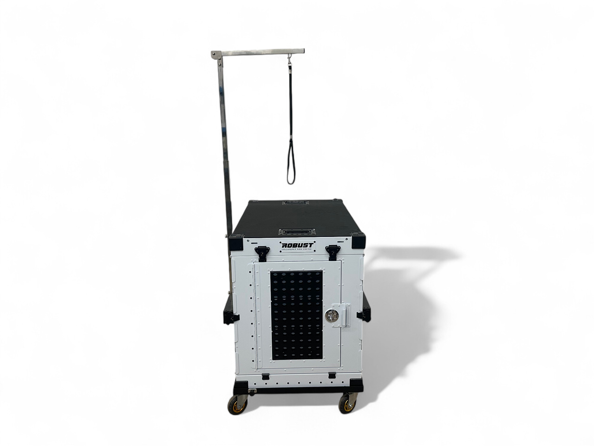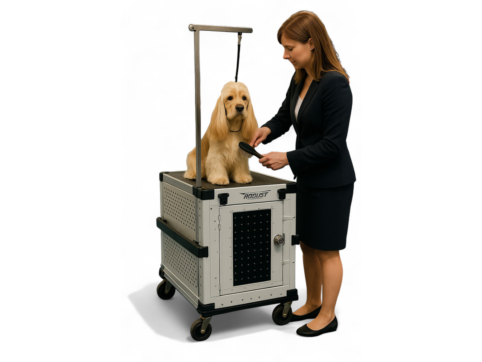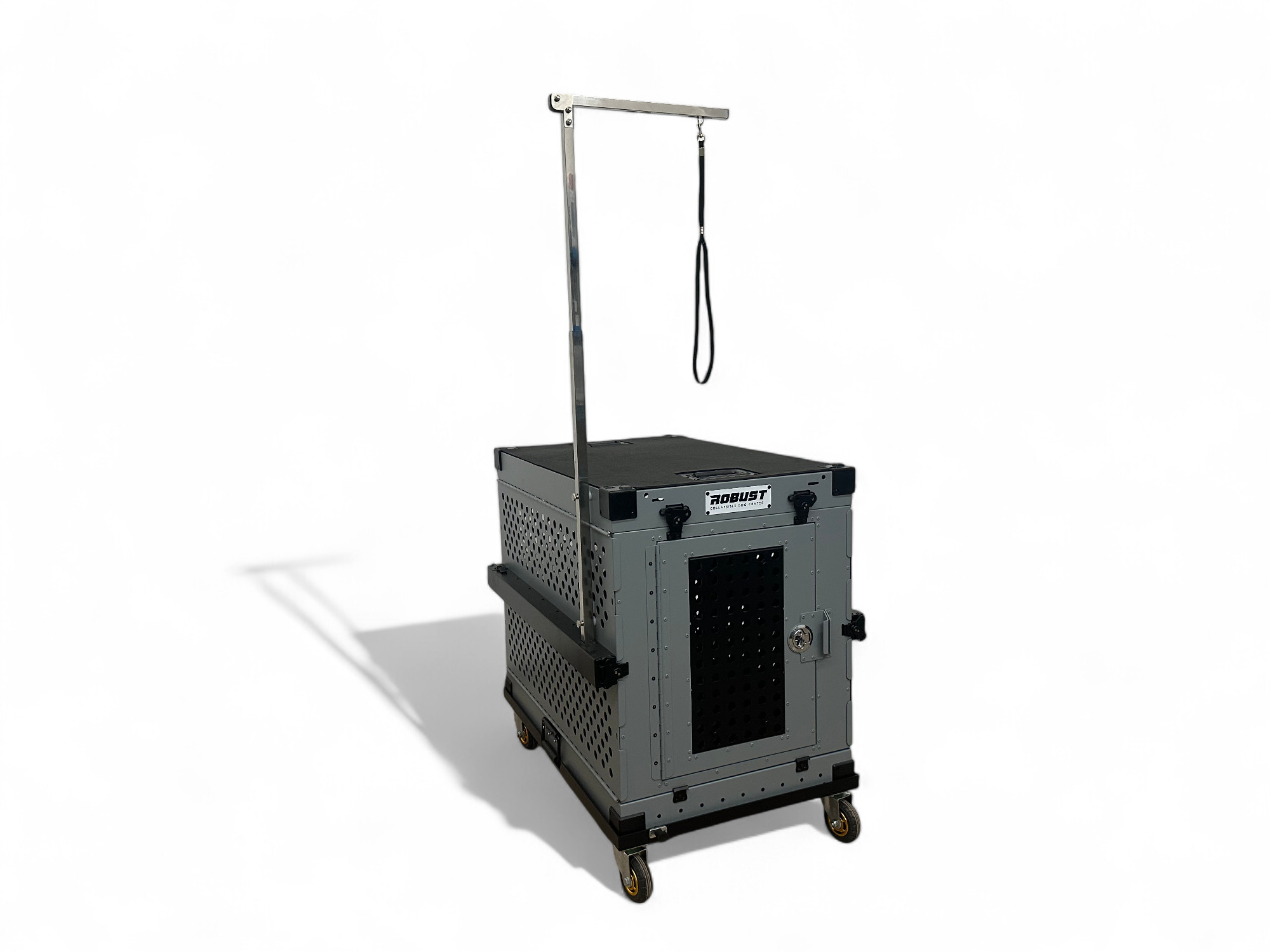 Transforma el aseo de tu perro en una tarea fácil y profesional con el set de peluquería ROBUST. Este kit completo, con brazo extensible y correa de sujeción, se acopla a tu jaula o mesa ROBUST para mantener a tu mascota segura y quieta durante el cepillado, corte o secado. Es la solución ideal para un acabado perfecto sin estrés.