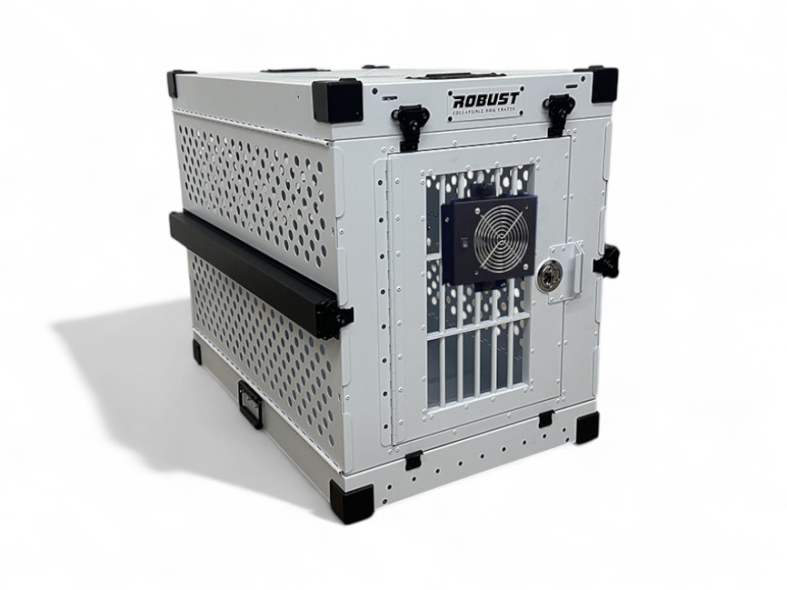 Mantén a tu mascota fresca y segura con el ventilador para jaulas ROBUST. Este accesorio esencial, diseñado para un ajuste perfecto en todas las jaulas ROBUST, proporciona una ventilación silenciosa y constante, ideal para prevenir el sobrecalentamiento en viajes, exposiciones o durante los días calurosos en casa. Su estructura metálica y fácil instalación lo convierten en la solución definitiva para el bienestar de tu perro.