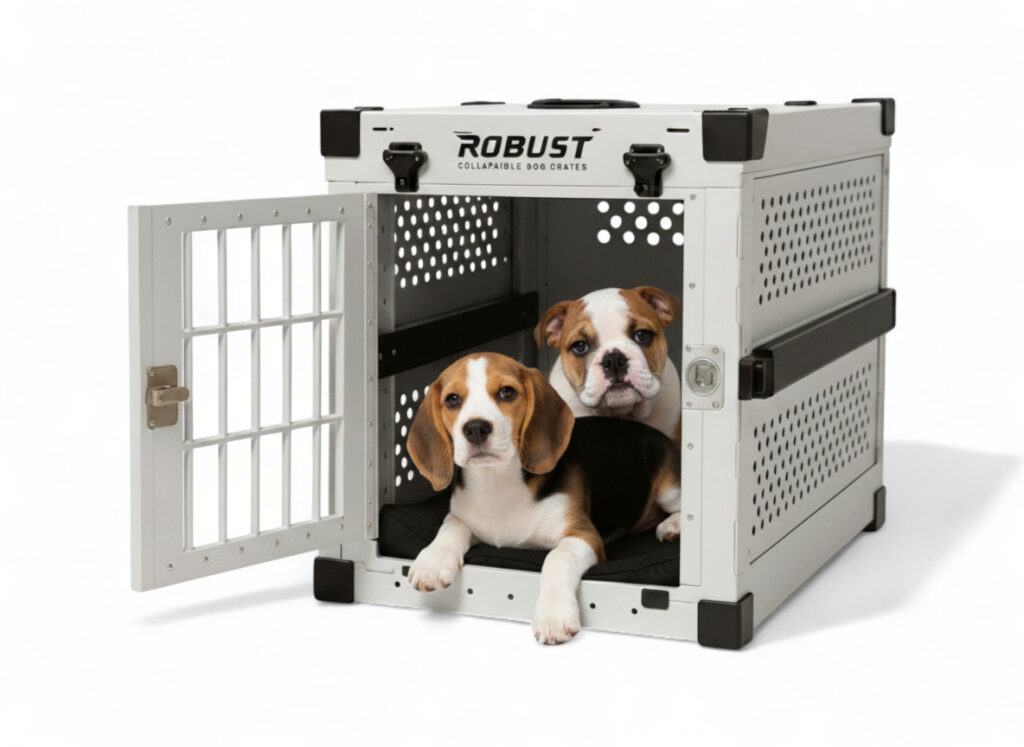 A caixa de transporte ROBUST está disponível em vários tamanhos, tornando-a perfeita para cães de pequeno, médio e grande porte. É ideal para raças como Labradores, Pastores Alemães, Buldogues Franceses, Corgis, Beagles, Pugs, Poodles e muitas outras. Confira nosso guia de tamanhos para escolher a caixa de transporte dobrável que melhor se adapta ao seu pet.